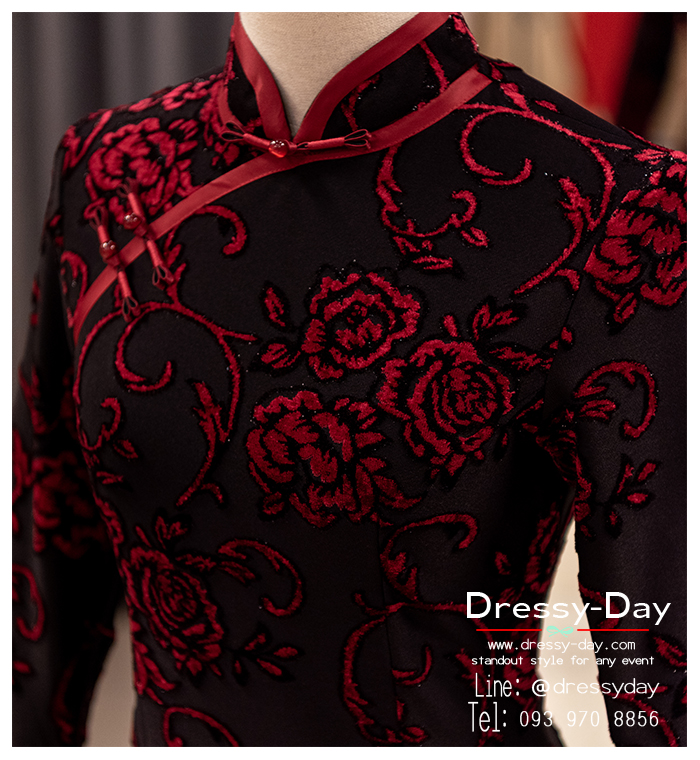 - ดีเทลของ ชุดกี่เพ้าเก๋ๆ : ชุดกี่เพ้าประยุกต์ แบบยาว มีแขน เล่นดีเทลด้วยงานปักผ้ากำมะหยี่ ลายดอกกุหลาบ และเพิ่มความหรูด้วยงานกระดุมมุข กระโปรงผ่าด้นข้าง มาพร้อมซับในอย่างดี ใส่แล้วสวย ผอม หรู ดูดีมากๆ สาวๆ ที่ชอบ ชุดกี่เพ้าแฟชั่น แบบเรียบๆ ดูดีแบบไม่ต้องมีดีเทลงานปัก แนะนำเลยนะคะ ผ้านิ่มและลื่นใส่สบายมากๆ ค่ะ