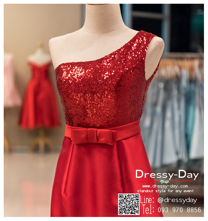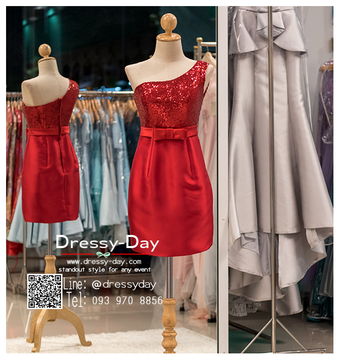 - สี ชุดราตรีสั้นหรู : ชุดราตรีสีเแดง